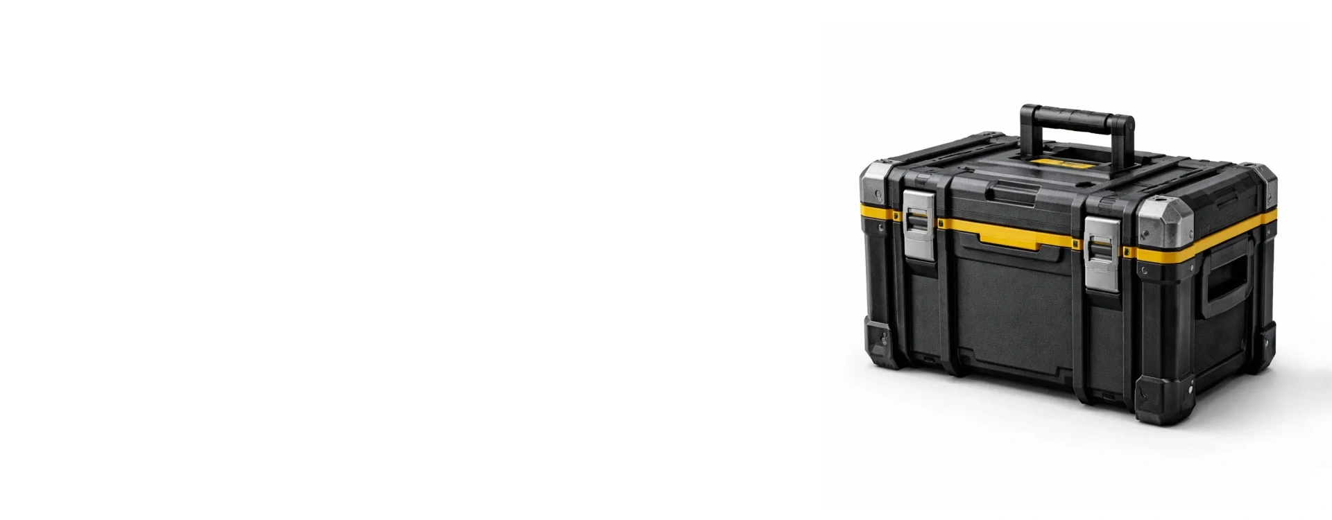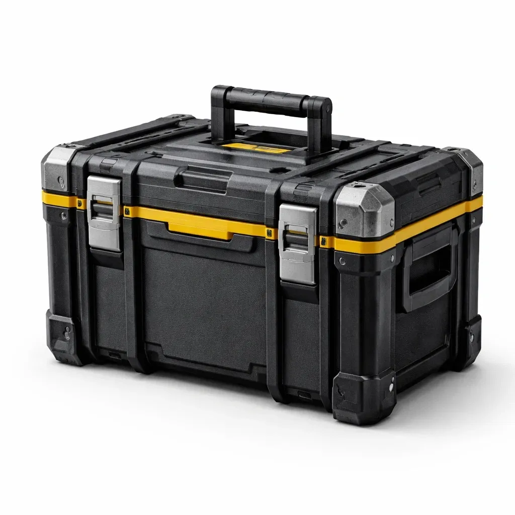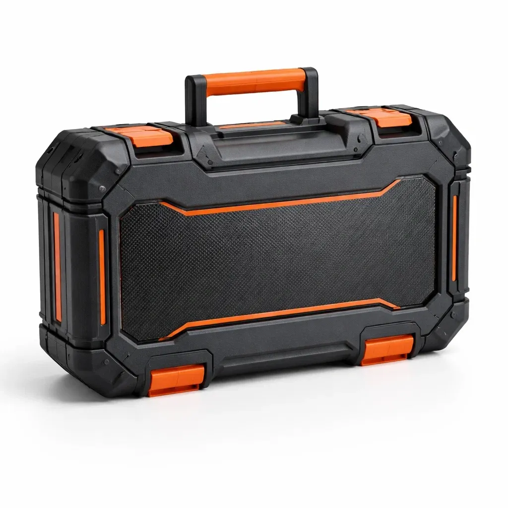 Boîte de rangement rigide destinée au stockage et au transport d’outils, avec une structure compacte et une forme régulière.